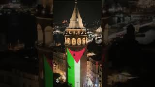 برج غلاطة في إسطنبول يتزين بعلم فلسطين تضامنًا مع غزة
