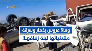 وفاة عروس وعدد من أقاربها بحادث سير في ليلة زفافها بذمار وسرقة مقتنياتهم أثناء الحادث